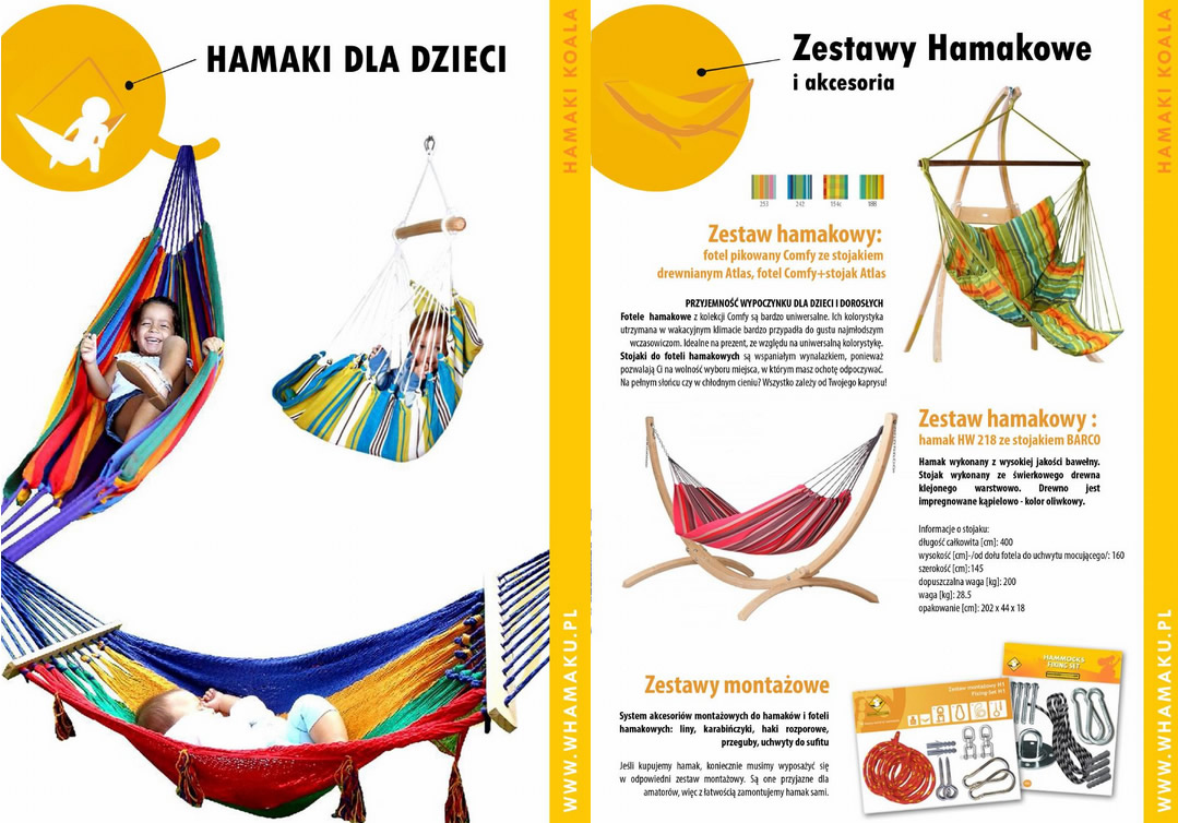 Zapraszamy do przeglądania naszego katalogu KOALA podzielonego na kategorie: hamaki ogrodowe, hamaki koala, zestawy ogrodowe koala, akcesoria do hamaków, fotele hamakowe, hamaki dla dzieci koala, hamaki z drążkiem, hamak z drążkiem, hamak koala, hamaki dla dzieci, stojaki do hamaków, hamaki, hamak, dodatki KOALA, poduszki KOALA.