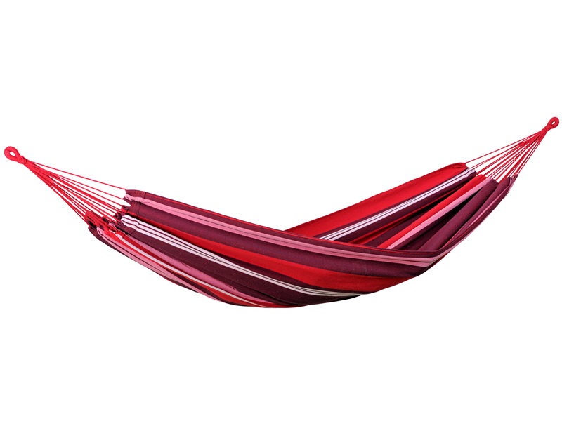 Elegancki hamak ogrodowy o charakterystycznym wzorze. Szeroka gama akcesoriów pozwala na zawieszenie go w dowolnym miejscu.