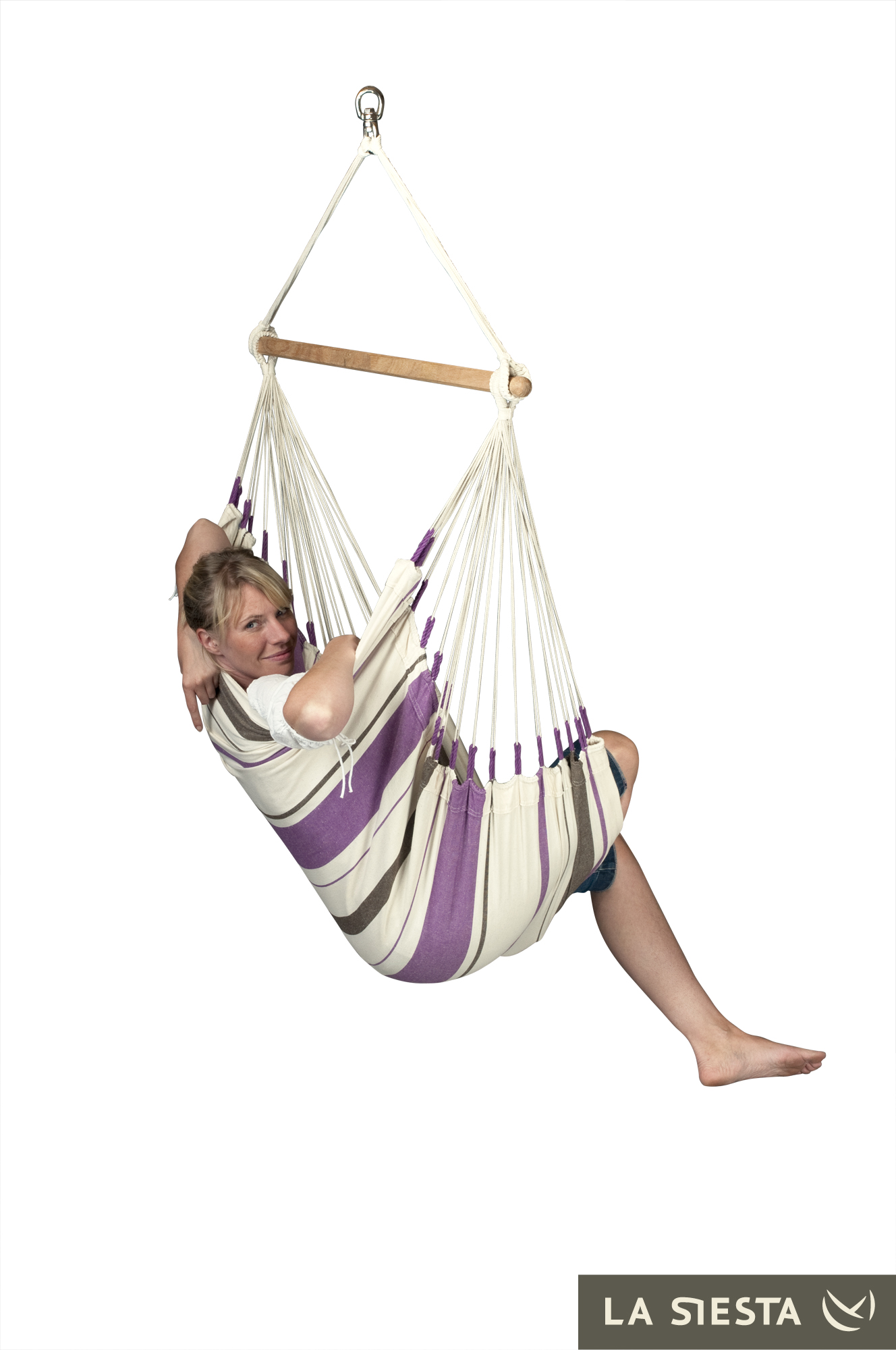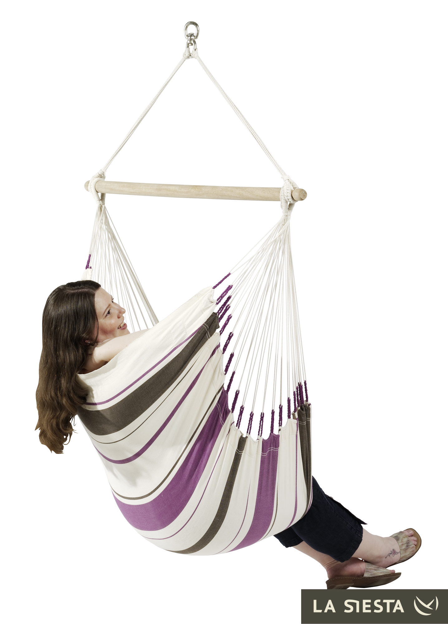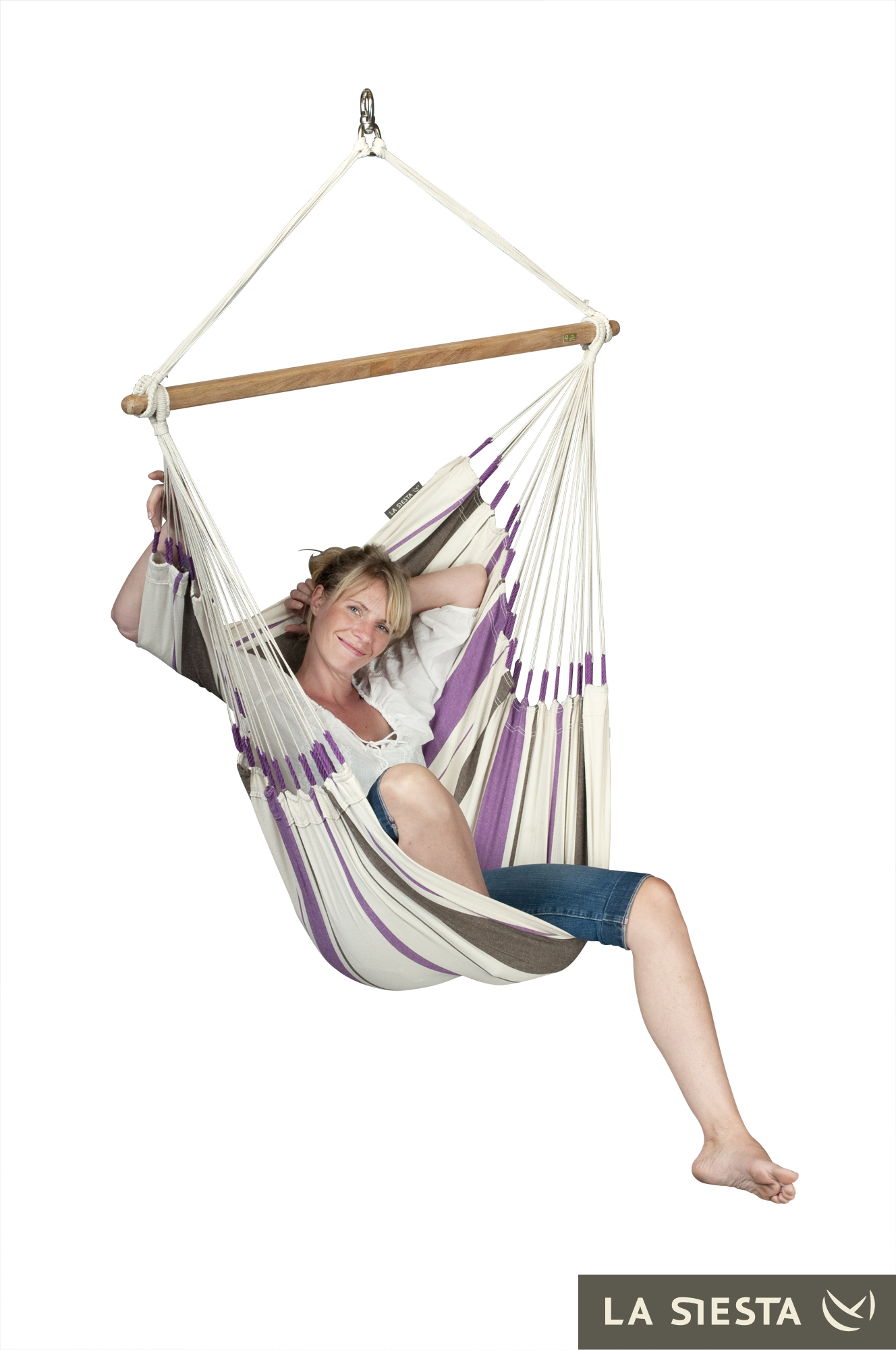 LA SIESTA - Kolumbijski fotel hamakowy jednoosobowy CARIBEÑA fioletowo-biały