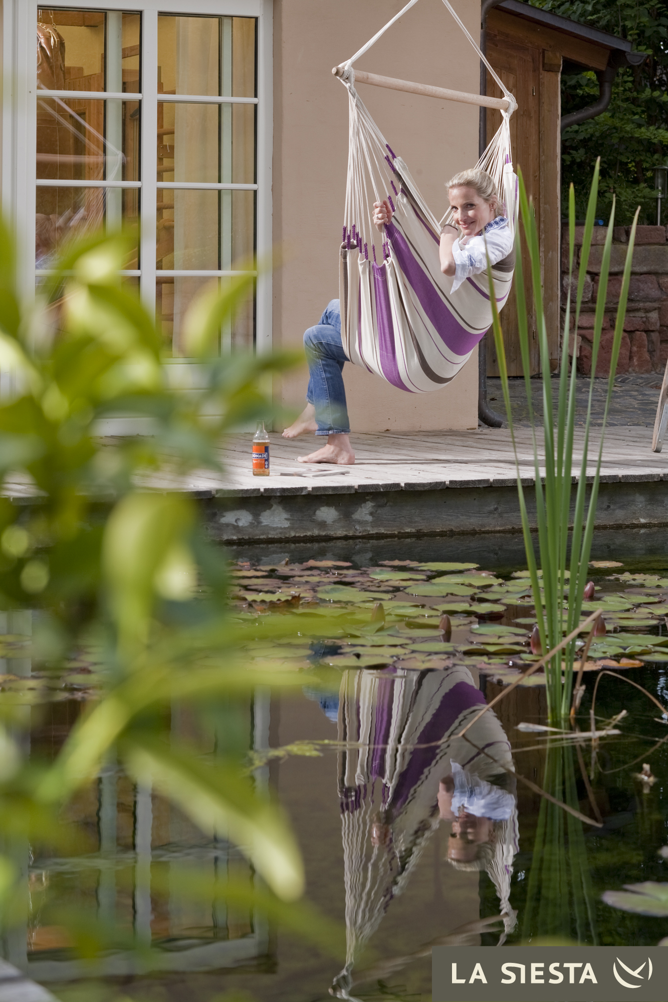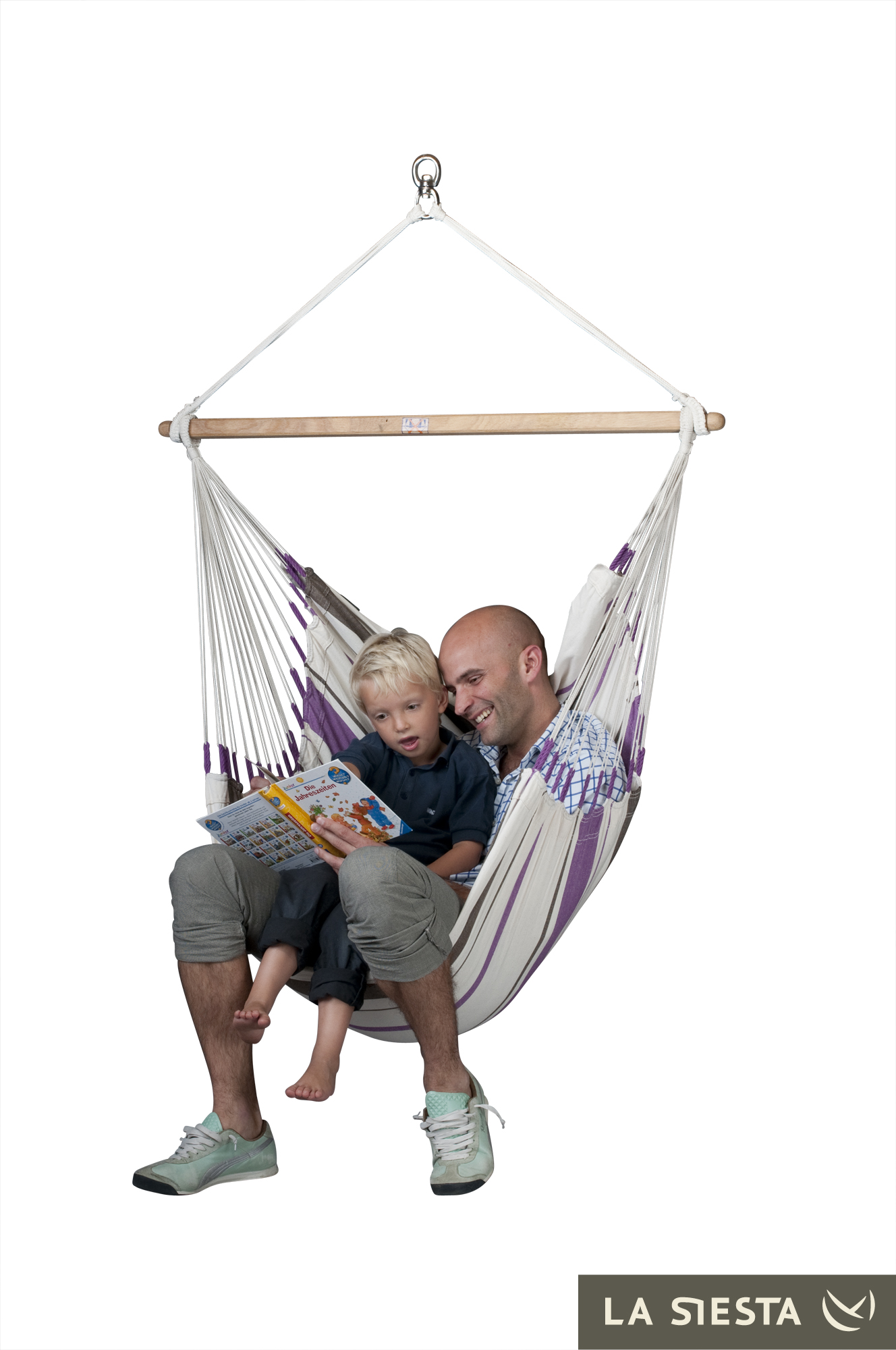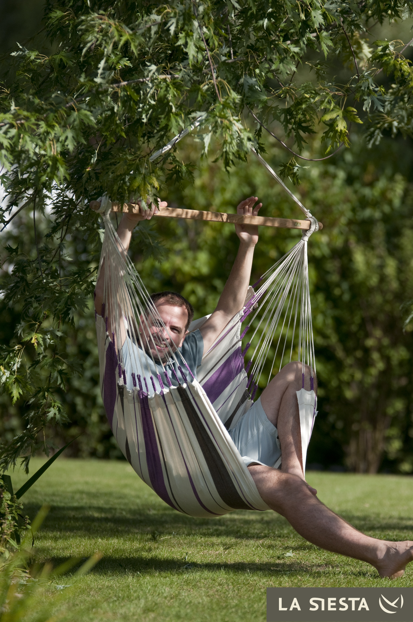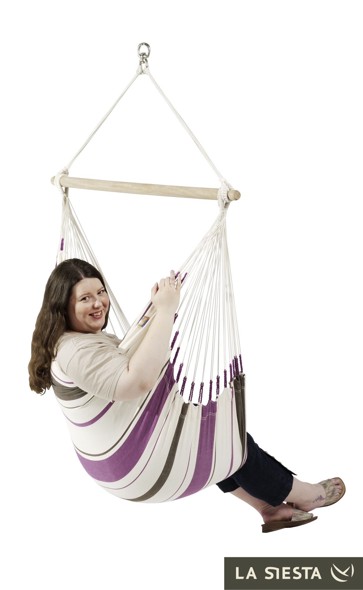 LA SIESTA - Kolumbijski fotel hamakowy jednoosobowy CARIBEÑA fioletowo-biały