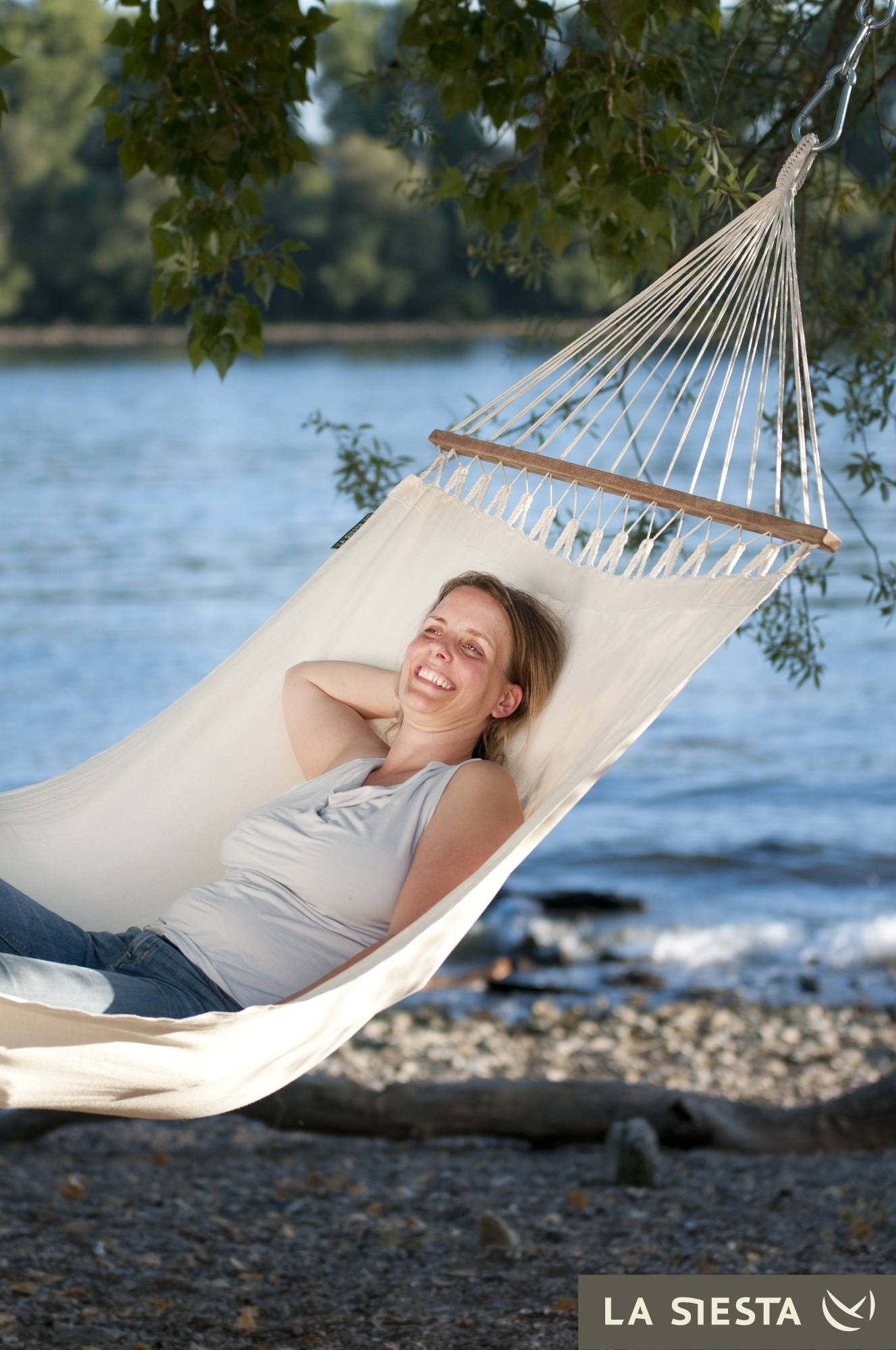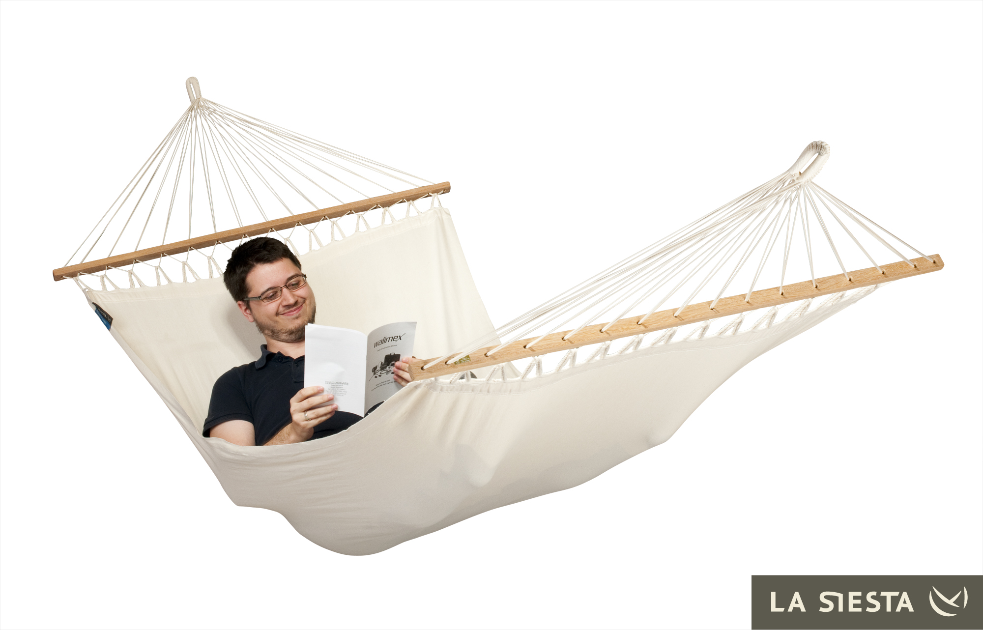 LA SIESTA - Kolumbijski naturalny jednoosobowy hamak z drążkiem MODESTA écru