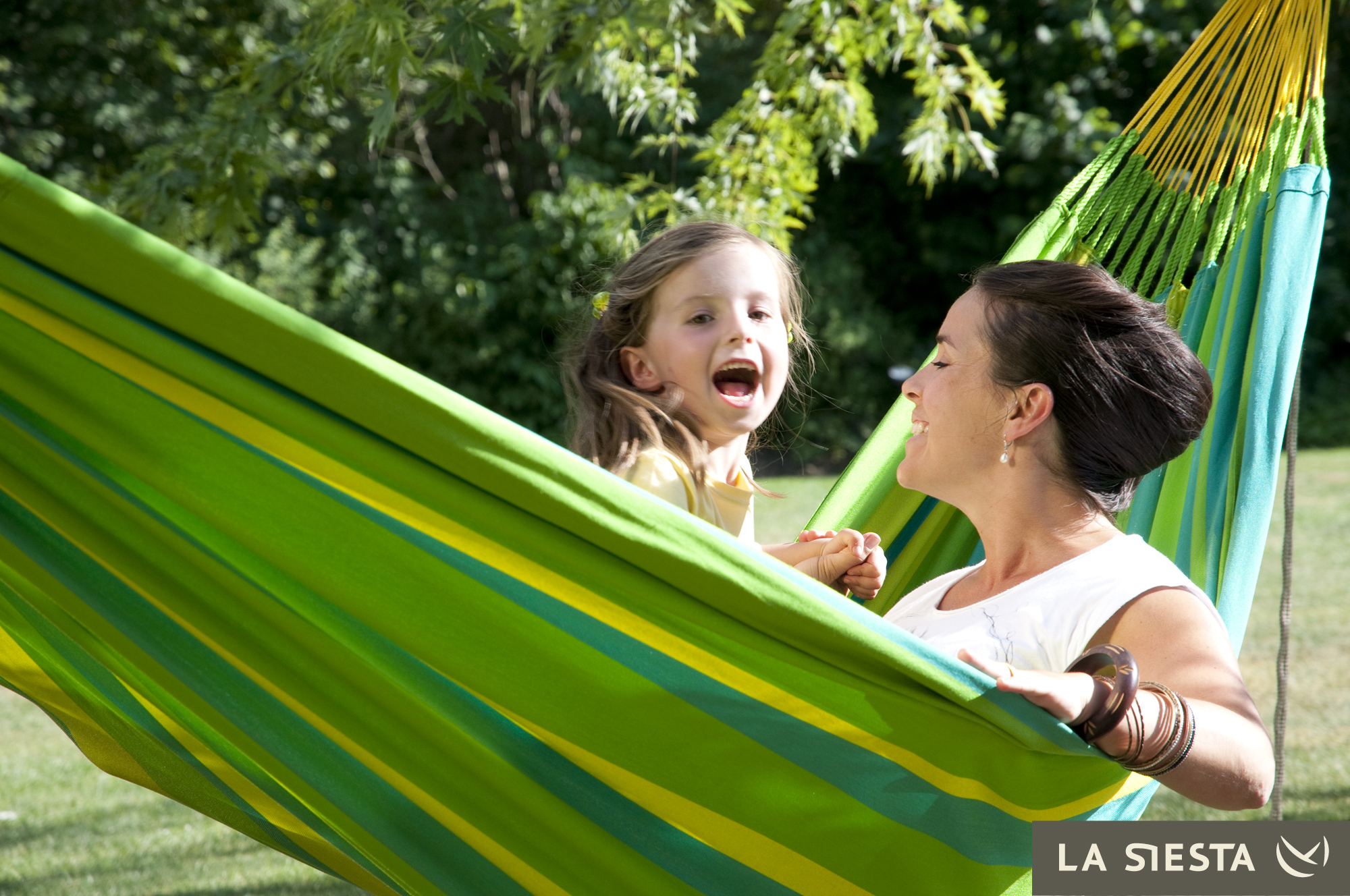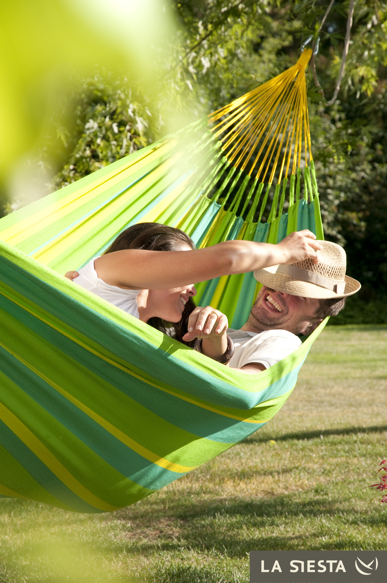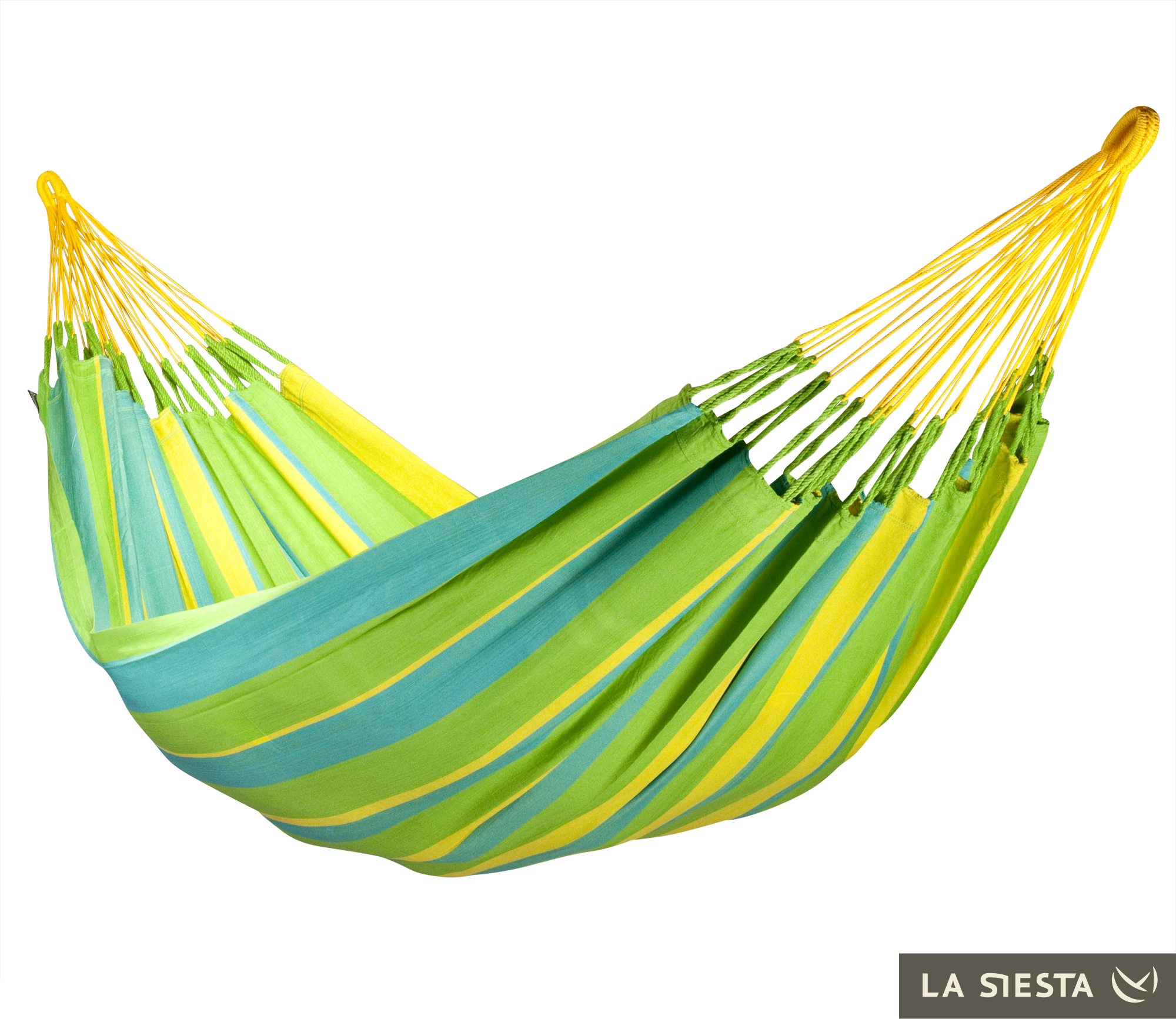 LA SIESTA - Kolumbijski dwuosobowy hamak odporny na warunki pogodowe SONRISA zielono-żółty