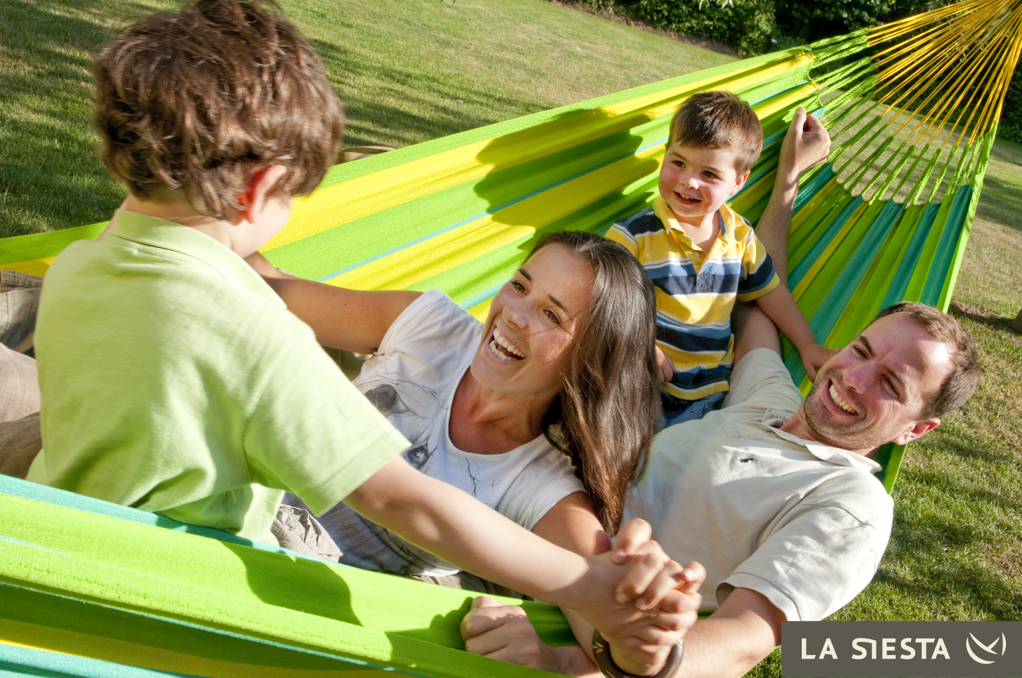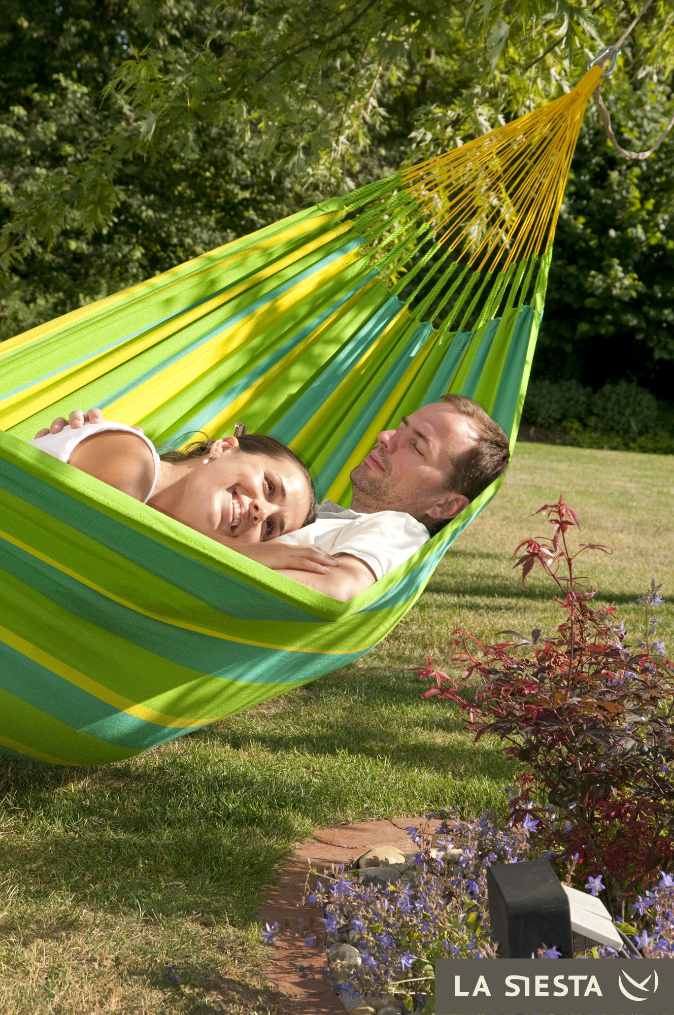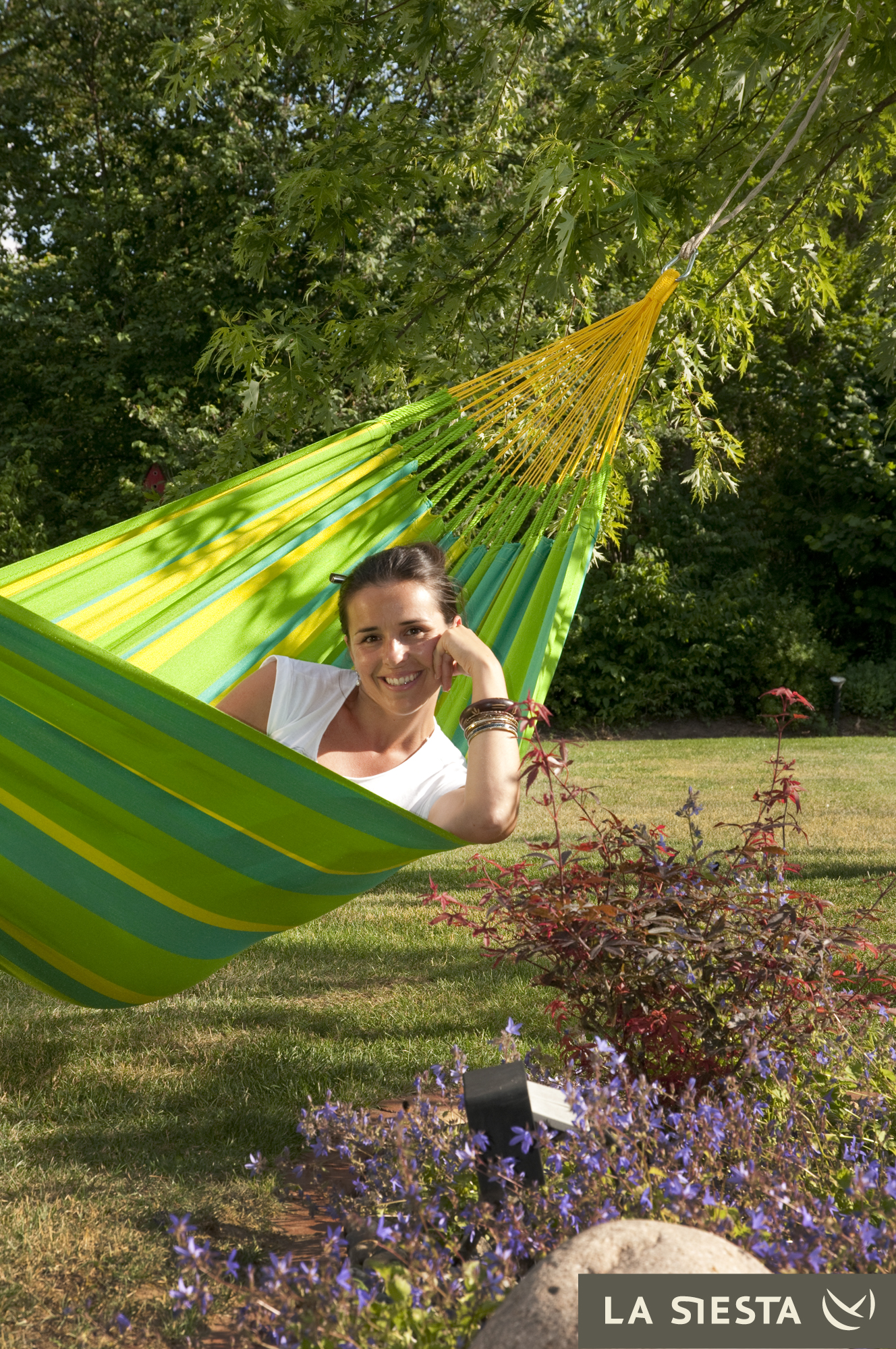 LA SIESTA - Kolumbijski dwuosobowy hamak odporny na warunki pogodowe SONRISA zielono-żółty