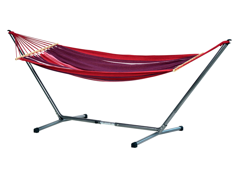To zestaw z myślą o Państwa komforcie i wygodzie. Stelaż Sumo z powłoką RockStone wraz z hamakiem EllTex -Tonga Fuego o powierzchni leżenia: około 210 x 120 cm.
